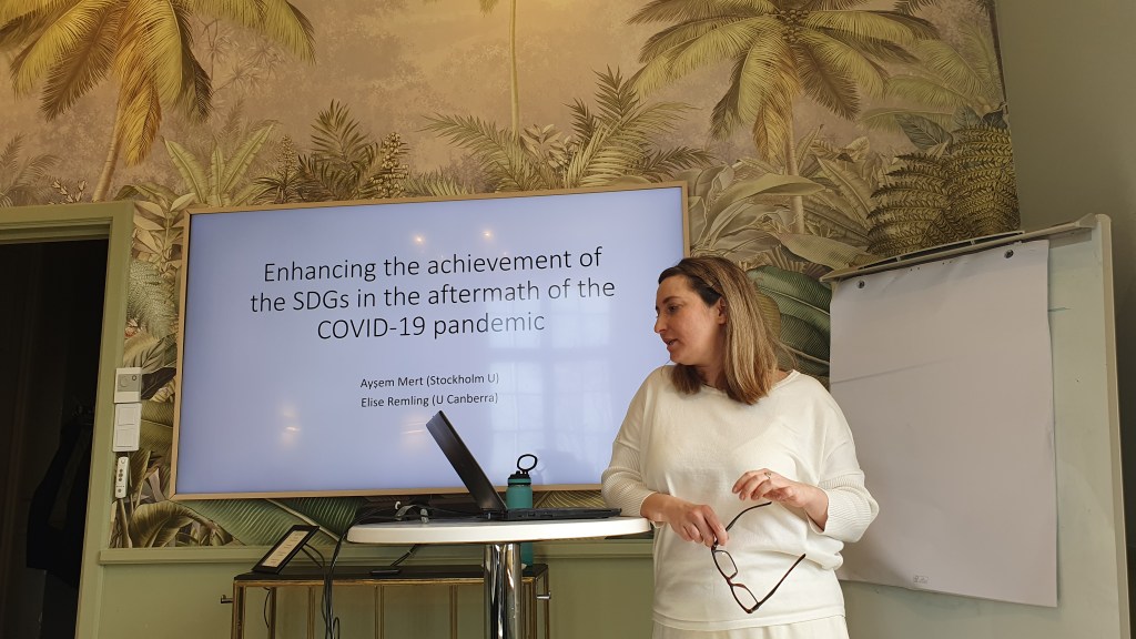 Aysem Mert presented the team’s co-authored paper titled Political Fantasy in Global Environmental Politics at the Stockholm Center on Global Governance (SCGG) workshop.